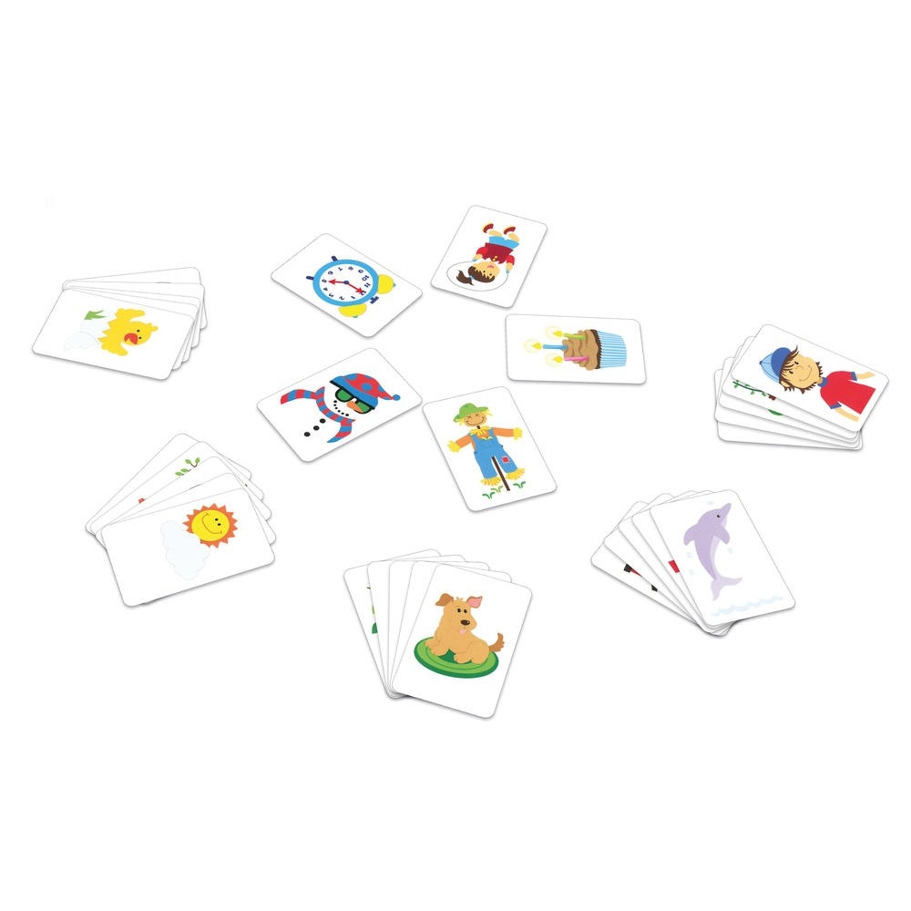 Sur chaque carte deux dessins pratiquement identiques sont représentés. D’un côté, la fleur est ouverte, de l’autre elle est fermée. Au recto, le soleil se cache derrière les nuages, au verso, il est passé devant les nuages… À chaque tour, un joueur retourne secrètement une carte pendant que les autres joueurs ont les yeux fermés. Il annonce ensuite la phrase magique “1,2,3, on a changé quoi ?” puis, tout le monde ouvre les yeux. Le premier à trouver la carte qui a été retournée peut se débarrasser d’une de ses cartes. Le premier à ne plus avoir de carte remporte la victoire !